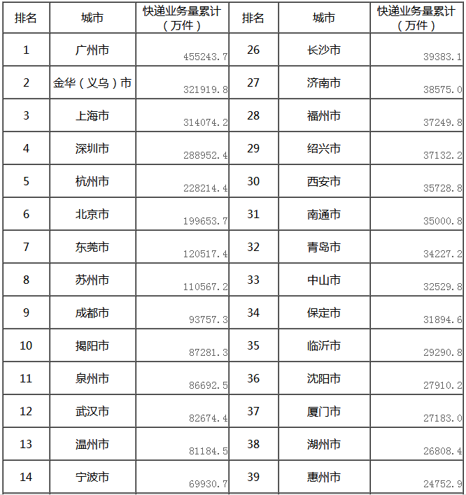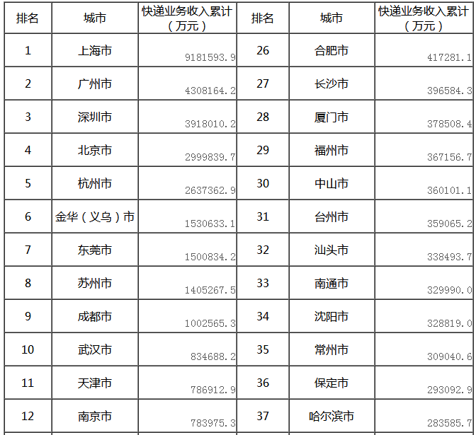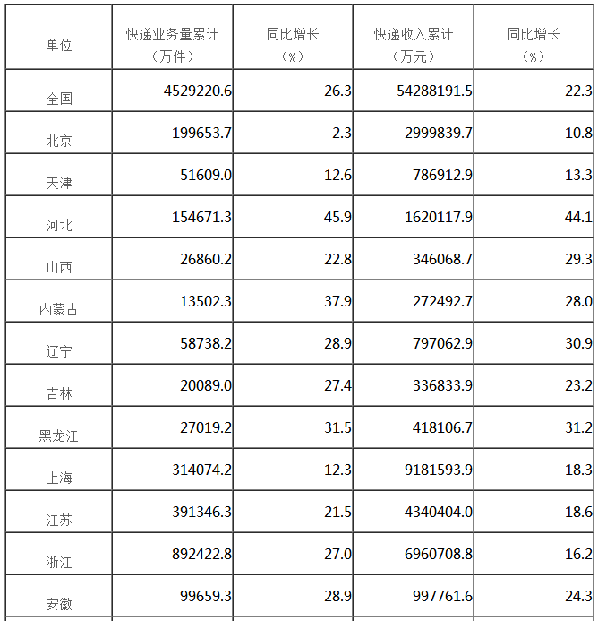 分省快遞服務(wù)企業(yè)業(yè)務(wù)量和業(yè)務(wù)收入情況表