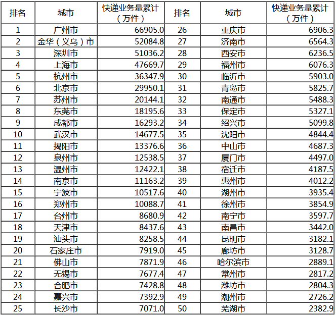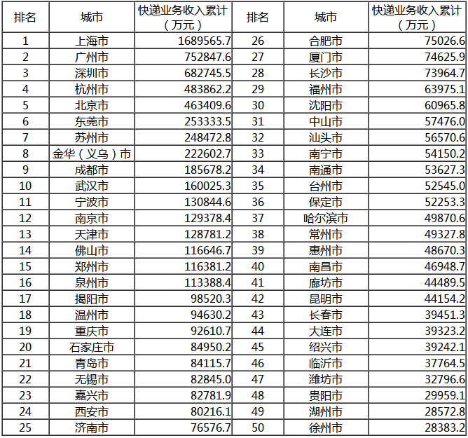 分省快遞服務(wù)企業(yè)業(yè)務(wù)量和業(yè)務(wù)收入情況表