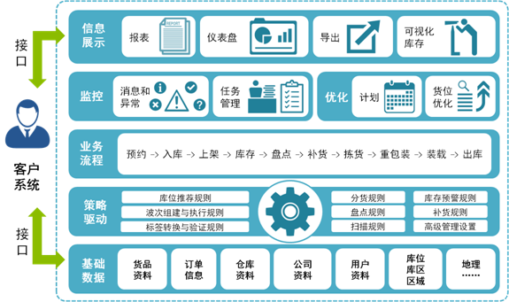 WMS提供了與其他信息系統集成的標準化接口和電子數據交換(EDI),實現與企業內部以及外部合作伙伴信息系統的無縫集成和數據傳遞,從而便于搭建集成的一體化供應鏈協同平臺,加速整個供應鏈環節上的信息流,提高供應鏈的整體效能。