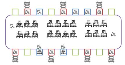此外,通過微信或網頁預約提卸貨,倉庫可提前掌握提卸貨流量高峰,并在月臺合理安排資源,提升操作效率。左下圖為倉庫實時月臺示意圖。紅色月臺正在進行提卸貨操作,藍色月臺為已預約的提卸貨,綠色為空閑的月臺。