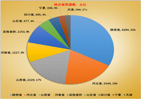 一期通過半年上線運(yùn)行,平臺累計發(fā)布貨源13,636條,累計發(fā)運(yùn)車次104,006車,上游發(fā)貨站點(diǎn)涉及以榆林一區(qū)三縣為主共計400個煤礦/煤廠,下游卸貨站點(diǎn)包含29個省份、202個市、725個縣的1000余個站點(diǎn)。其中陜西、河北和山西是最大的前三個貨源目的地,合計占到貨源總數(shù)的近70%。以下為貨源上下游站點(diǎn)列表截圖如下: