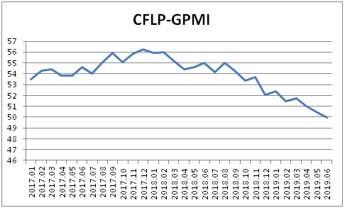 據(jù)中國(guó)物流與采購(gòu)聯(lián)合會(huì)發(fā)布,2019年6月份全球制造業(yè)PMI為50%,較上月下降0.5個(gè)百分點(diǎn),較去年同期下降5個(gè)百分點(diǎn),連續(xù)3個(gè)月環(huán)比下降,降至榮枯線。分區(qū)域看,非洲制造業(yè)PMI較上月持平,亞洲、美洲和歐洲制造業(yè)PMI均有小幅下降。