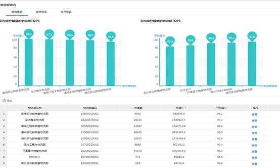 首先,系統針對不同的運輸任務,輸出相應的評價數據;然后,根據評價指標及標準(送達時間、車輛質損情況、外觀整潔情況、服務規范及態度、附件齊全情況等)進行相應運輸質量/服務質量的評價;接著,系統會充分整合作業的過程數據(包括位置數據、時間數據、油耗數據、里程數據、質量數據、成本數據、駕駛行為數據、異常數據、預警報警數據等等數據)來考量評價結果是否客觀;其次,評價結果遵循既定的積分規則,生成對應承運商/承運司機的物流運輸/物流服務的積分排名。最終,評價數據和積分數據匯總于績效數據中,通過結算數據進行績效兌現,并應用于業務管理:依據作業結果及經銷商對物流的評價結果對相應承運商排名實施相應業務量的激勵,從而提升物流服務。