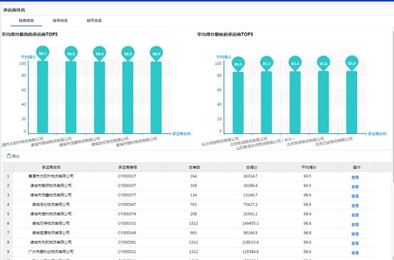 車聯網系統的綜合評價功能的運用使用戶可以通過查詢條件進行運單的數據統計查詢,如:直觀的顯示出運單綁定及時性、起運及時性、到達及時性、里程合規性的對比結果,便于管理者對數據的分析和運營管理,統計類別可以根據實際業務的需求進行調整,滿足管理人員的不同需求,便于對整體工作有更深層次的認識。
