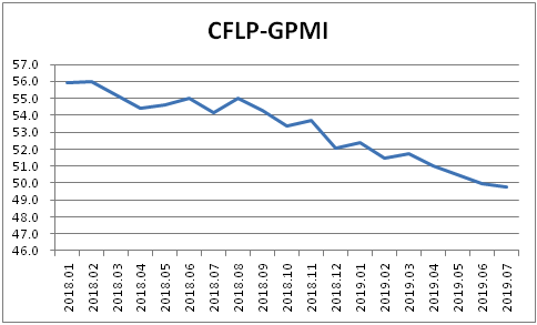 全球制造業PMI自今年4月以來,呈現持續下行走勢,本月降至榮枯線以下,意味著全球經濟下行態勢明顯。各國家和區域之間的貿易摩擦頻發,擾亂全球產業鏈的運行秩序,嚴重影響了全球經濟增長的可持續性。國際貨幣基金組織(IMF)7月23日發布的《世界經濟展望》報告預測,全球經濟2019年將增長3.2%,2020年將回升至3.5%,增速預測較4月份均下調了0.1個百分點。
