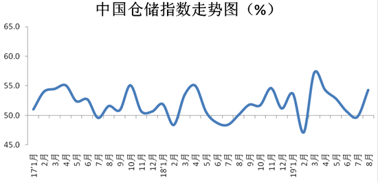 中國物流與采購聯合會發布的2019年8月份中國物流業景氣指數為50.9%,較上月回落0.2個百分點;中國倉儲指數為54.3%,較上月回升4.5個百分點。