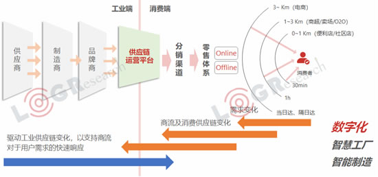 羅戈研究發布的《2018-2019羅戈物流行業年報》,其第五章第1節,將供應鏈劃分為制造供應鏈(生產制造端)與消費供應鏈(成品銷售端),從整體視?解析社會的發展給商業及商業邏輯帶來的影響、以及這種影響在供應鏈中的體現、并帶來重構。