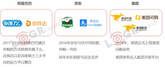 隨著大環境的改變,即時配送平臺正在從不同的方向發力即時配送業務,也意味著在新零售變革不斷深化的大環境下,即時配送平臺已經邁入多元化業務拓展,謀求精細化運營的階段。即時配送行業在過去幾年經歷了多重并購整合,2018 年形成了三足鼎立的行業格局,阿里、京東、美團三家即時配送平臺。