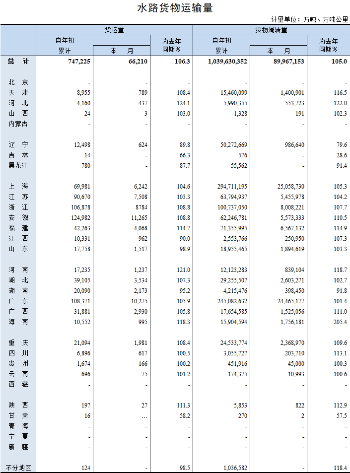 2019年12月水路貨物運輸量