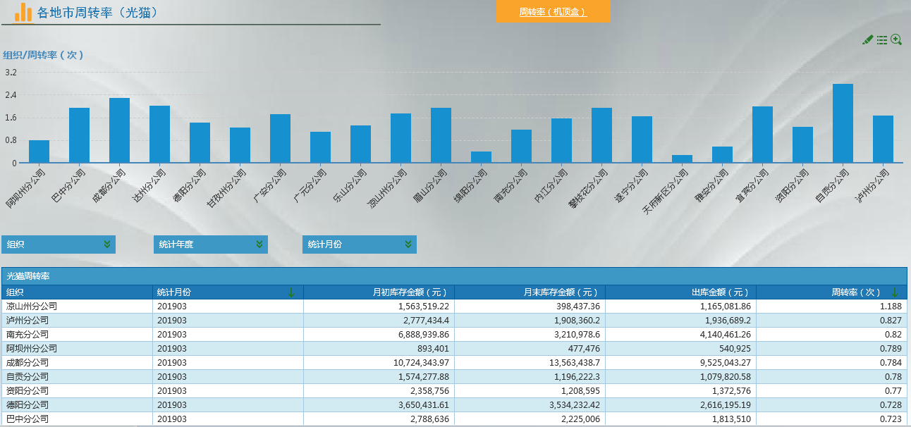 4) 從在庫物資分布、庫齡、周轉率等維度呈現在庫物資掃描情況、周轉情況、呆滯情況,有利于家寬終端采購計劃制定,庫存管理辦法優化,以便提升庫存管理效率降低庫存成本。
