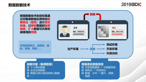 最早數據脫敏的主要是針對數值和文本這種很基本的數據類型,現在對于圖片、對音頻、視頻都有脫敏的需要。值得一提的是,各行各業在實施數據脫敏及追求數據應用價值時,對數據脫敏業務合規性及高可用性,敏感數據的分布與管理,脫敏數據可用性,數據審計技術手段,業務操作便捷性以及項目實施周期極為關注。