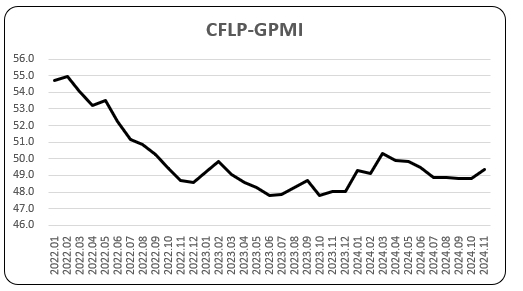 - 指數(shù)小幅上升,全球經(jīng)濟(jì)恢復(fù)平穩(wěn)趨升 —2024年11月份CFLP-GPMI分析