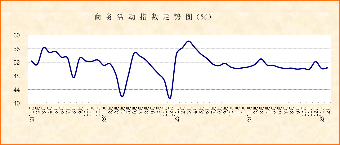 中國(guó)物流與采購(gòu)聯(lián)合會(huì)、國(guó)家統(tǒng)計(jì)局服務(wù)業(yè)調(diào)查中心發(fā)布的2025年2月份中國(guó)非制造業(yè)商務(wù)活動(dòng)指數(shù)為50.4%,較上月上升0.2個(gè)百分點(diǎn),今年前兩個(gè)月均運(yùn)行在50%以上,顯示非制造業(yè)經(jīng)營(yíng)活動(dòng)今年以來持續(xù)擴(kuò)張,且增速較上月稍有加快。分行業(yè)來看,投資相關(guān)需求釋放帶動(dòng)建筑活動(dòng)加速推進(jìn),社會(huì)融資需求明顯釋放,居民出行和文旅消費(fèi)表現(xiàn)良好,新動(dòng)能相關(guān)行業(yè)持續(xù)活躍。