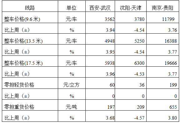 分車型看,各車型指數環比漲跌互現。其中,整車指數為1051.96點,比上周回升0.05%;零擔輕貨指數為1027.37點,比上周回落0.01%;零擔重貨指數為1051.63點,比上周回落0.05%。
