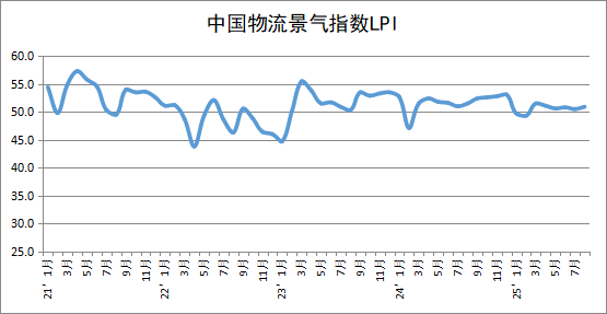 中國物流與采購聯合會發布的2025年8月份中國物流業景氣指數為50.9%,較上月回升0.4個百分點。