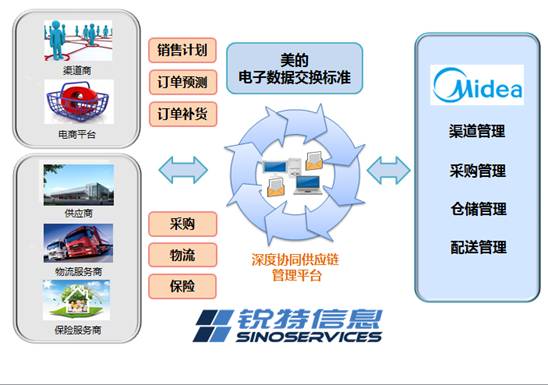 家電制造大佬美的集團(tuán),攜手銳特信息技術(shù)有限公司SinoServcies(以下簡(jiǎn)稱“銳特”)打造深度協(xié)同供應(yīng)鏈管理平臺(tái),以先進(jìn)的供應(yīng)鏈協(xié)同方案和電子數(shù)據(jù)交換EDI技術(shù)提升供應(yīng)鏈管理,實(shí)現(xiàn)制造業(yè)向更高層面的轉(zhuǎn)型。銳特幫助美的建立了統(tǒng)一的供應(yīng)鏈管理體系和EDI數(shù)據(jù)交換標(biāo)準(zhǔn),并在之前的項(xiàng)目中完成了美的與部分業(yè)務(wù)伙伴包括供應(yīng)商、物流服務(wù)商、保險(xiǎn)服務(wù)商等的對(duì)接。