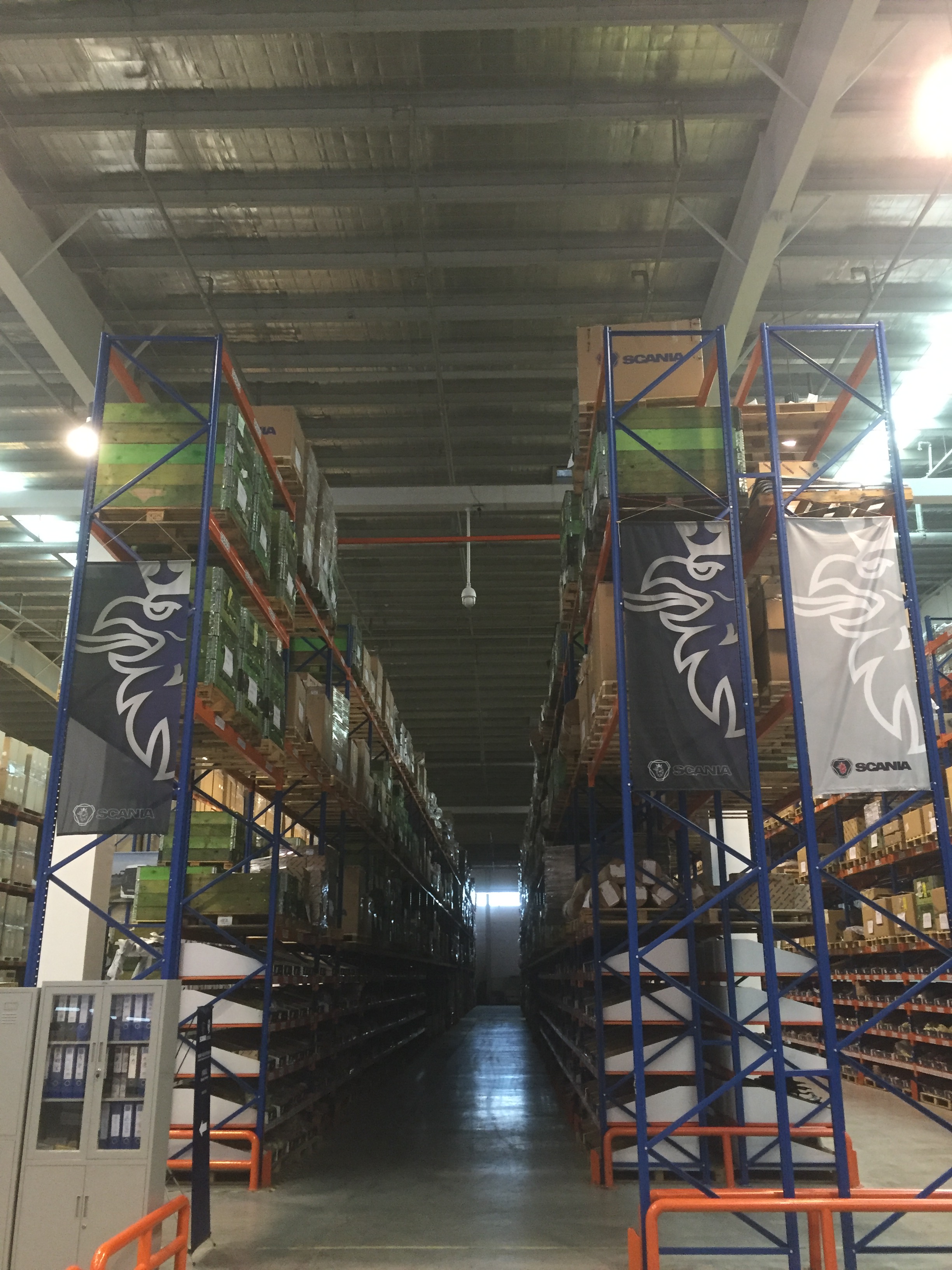斯堪尼亞全新零配件倉庫總面積達1600平方米,分為托盤庫位、挑貨庫位、地面庫位,零配件種類高達8000+,總價值約合3500萬人民幣。