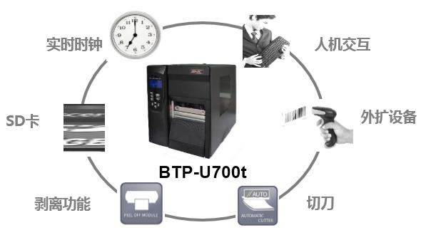 新北洋BTP-U700t內(nèi)嵌Linux操作系統(tǒng),可支持鍵盤(pán)、掃描槍、SD卡、U盤(pán)等外接設(shè)備,具有豐富的擴(kuò)展性能。另有切刀、剝離器、回卷器等豐富的擴(kuò)展組件可選。