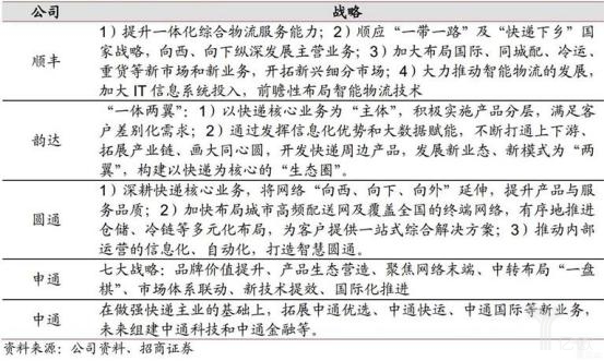 無論是直營的代表順豐,還是以加盟為主的桐廬幫,還是電商自營物流的代表京東物流,2017年以來他們都開始積極尋找新的商業方向。我們總結了2017年以來順豐、中通、圓通、申通、韻達以及京東物流的各大舉措,發現各家重點既有雷同,也有了越來越明顯的分化。他們除了在加強自身物流硬件的自動化、智能化布局之外,已經開始合縱連橫,走出國門。