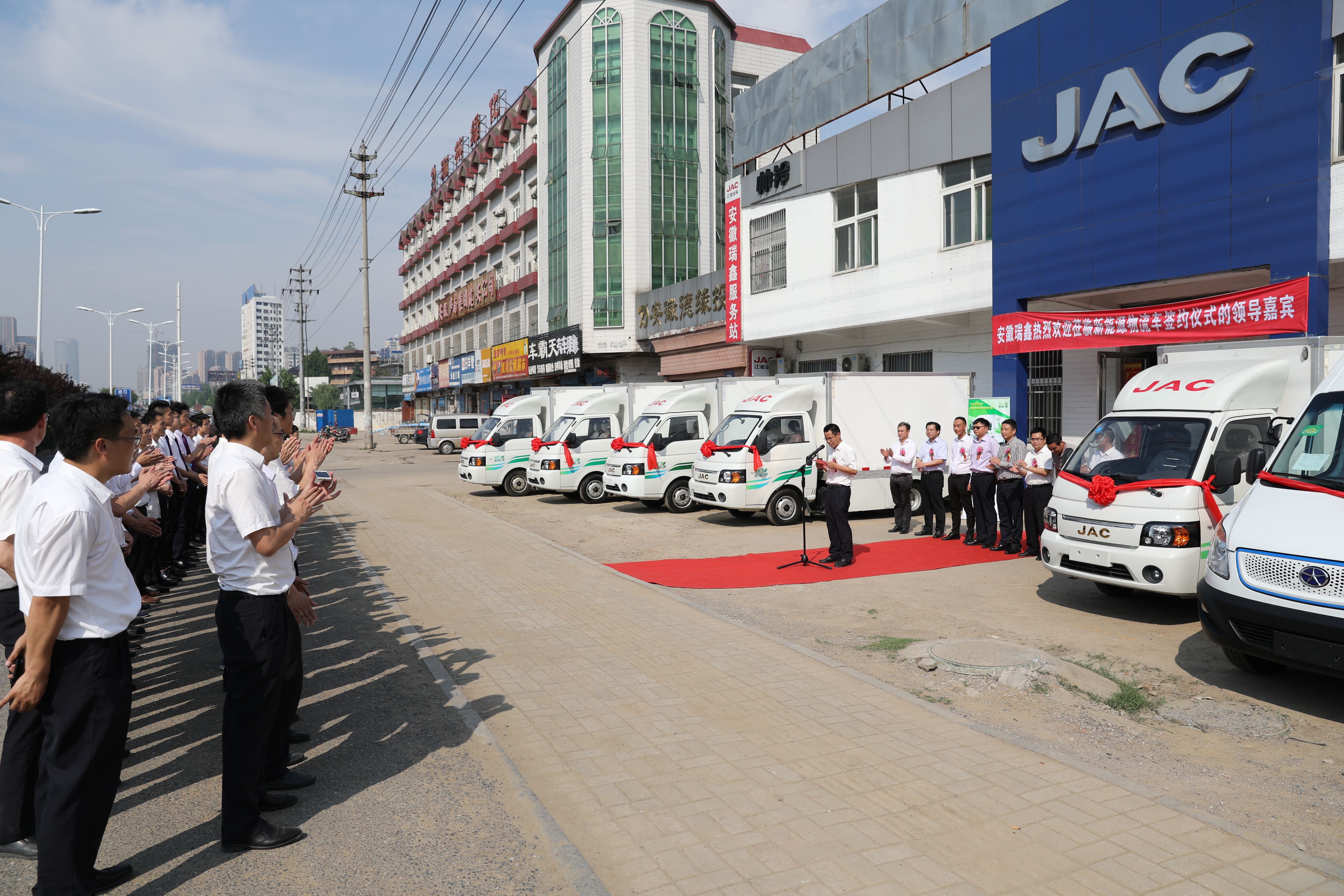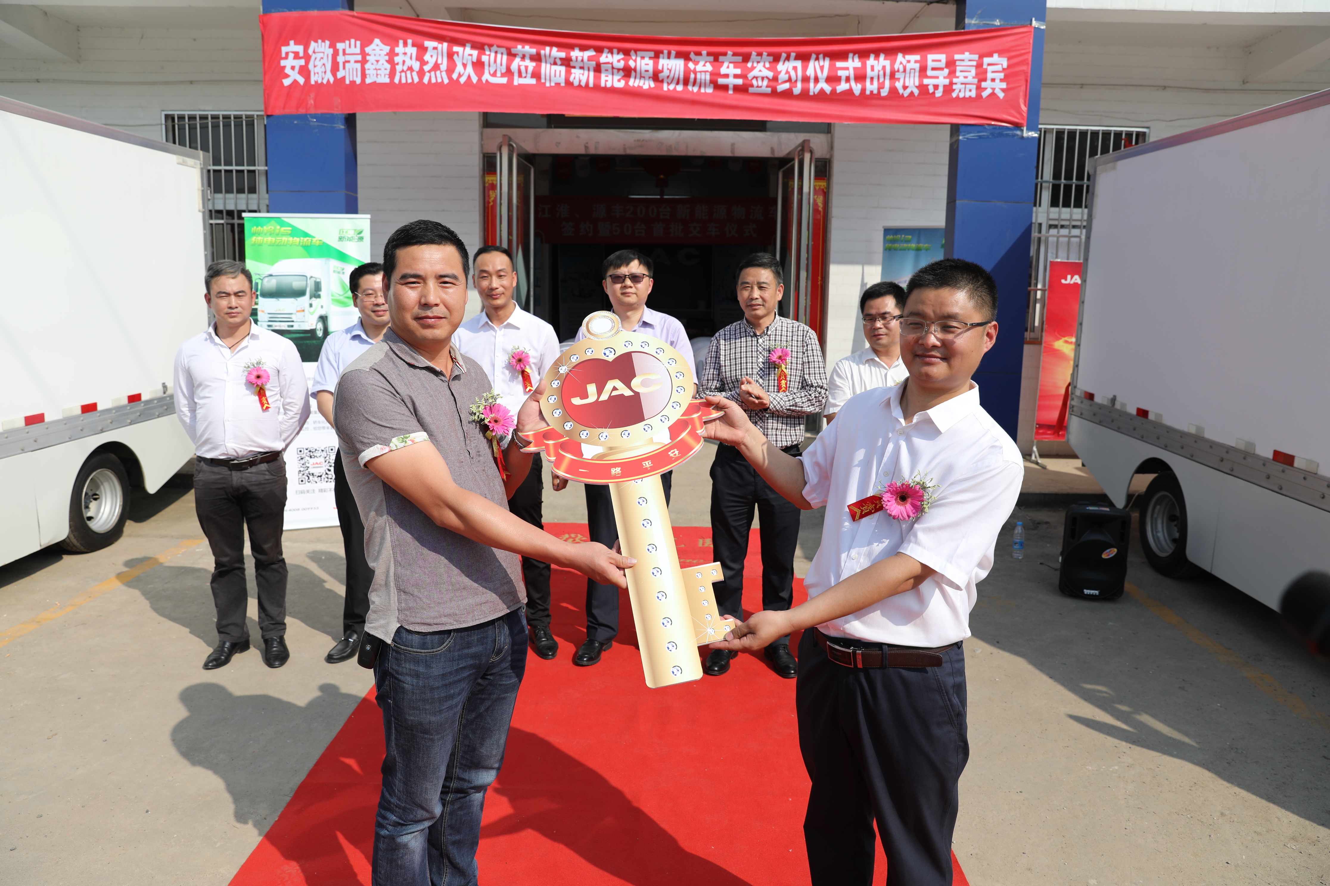 5月19日,安徽源豐新能源汽車銷售服務有限公司集中采購的200臺江淮新能源物流車,在安徽瑞鑫汽車銷售服務有限公司完成簽約和首批50臺交付。江淮輕型商用車營銷公司、江淮專用車有限公司及安徽瑞森汽貿公司相關領導、負責人參加簽約交付儀式。