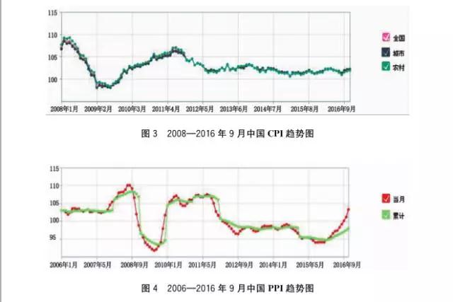 改革開放以來,中國CPI為負增長的有4年,超過5%的有13年,其中超過10%的有5年,1994年通賬率達到24.1%。21世紀以來,實現了物價基本穩定。改革開放以來,中國PPI為負增長的有12年,超過5%的有13年,其中超過10%的有5年,1993達到24%。其中,有兩點十分重要:一是CPI與PPI超過10%的年份是重合的;二是“十二五”期間CPI十分穩定,但PPI一直在下降。鋼材、煤炭、水泥、玻璃等生產資料,汽車、家電、建筑材料及五金電料、一般日用品、耐用消費品價格都在下跌,這足以說明一些產業的供給側結構性矛盾日益突出。據國家統計局數據顯示,2012年3月—2016年8月PPI都是負增長,2016年9月才開始微弱回升。