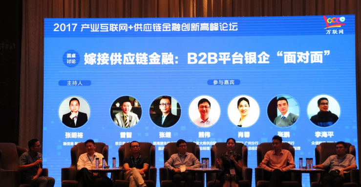 在下午的圓桌對話環節中,萬聯網邀請了融信通副總裁張明裕、思貝克總經理曾智、前海旗豐供應鏈副總經理張繼、金發大商供應鏈總經理熊偉、華夏銀行小微信貸部總經理肖蓉、招商銀行總行副總經理張鵬、眾譜網創始人李海平等行業精英現身說法,產業互聯網平臺如何高效率獲得金融機構的低成本資金?目前產業互聯網平臺很難獲得銀行資金支持的根源在哪里,如何突破?