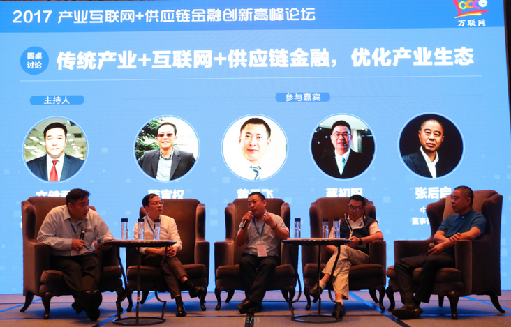 進入“圓桌會議”環節,主持人文健君與歐普照明首席財務官韓宜權、歐冶數據總經理黃云飛、眾陶聯總經理蔡初陽、中馳車福董事長兼CEO張后啟等專家們,以”頭腦風暴”的形式,針對傳統企業如何轉型升級互聯網?產業互聯網平臺如何延展供應鏈金融服務?如何通過供應鏈金融優化產業生態?等問題進行了互動探討。