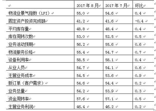 2017年8月份福建省物流業景氣指數(LPI)為55.0%