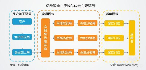 相比個人經營的餐廳,連鎖餐企一般會有統一的采購配送和確定的第三方供應商,但仍需經過繁多的交易環節,中間成本負擔嚴重,而且簡單的供銷關系缺乏服務屬性,各地餐廳的差異化需求得不到滿足。在經營壓力下,餐飲業對第三方專業化供應鏈服務的需求愈加強勁。