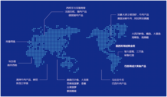 海航冷鏈全球生鮮商貿產品分布(部分)
