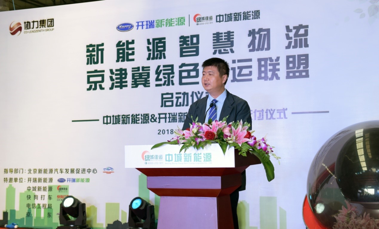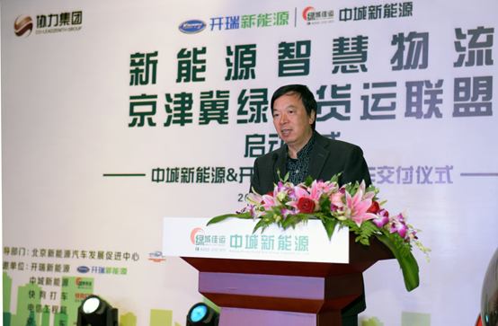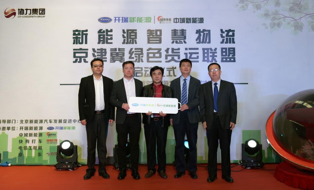 2018年10月12日上午,“新能源智慧物流京津冀綠色貨運聯盟-啟動儀式,暨中城新能源和開瑞新能源物流車交付儀式”在北京中城新能源物流有限公司舉行。本次活動由開瑞新能源發起,協力集團下屬北京中城新能源物流有限公司承辦,北京科委新能源汽車發展促進中心指導。