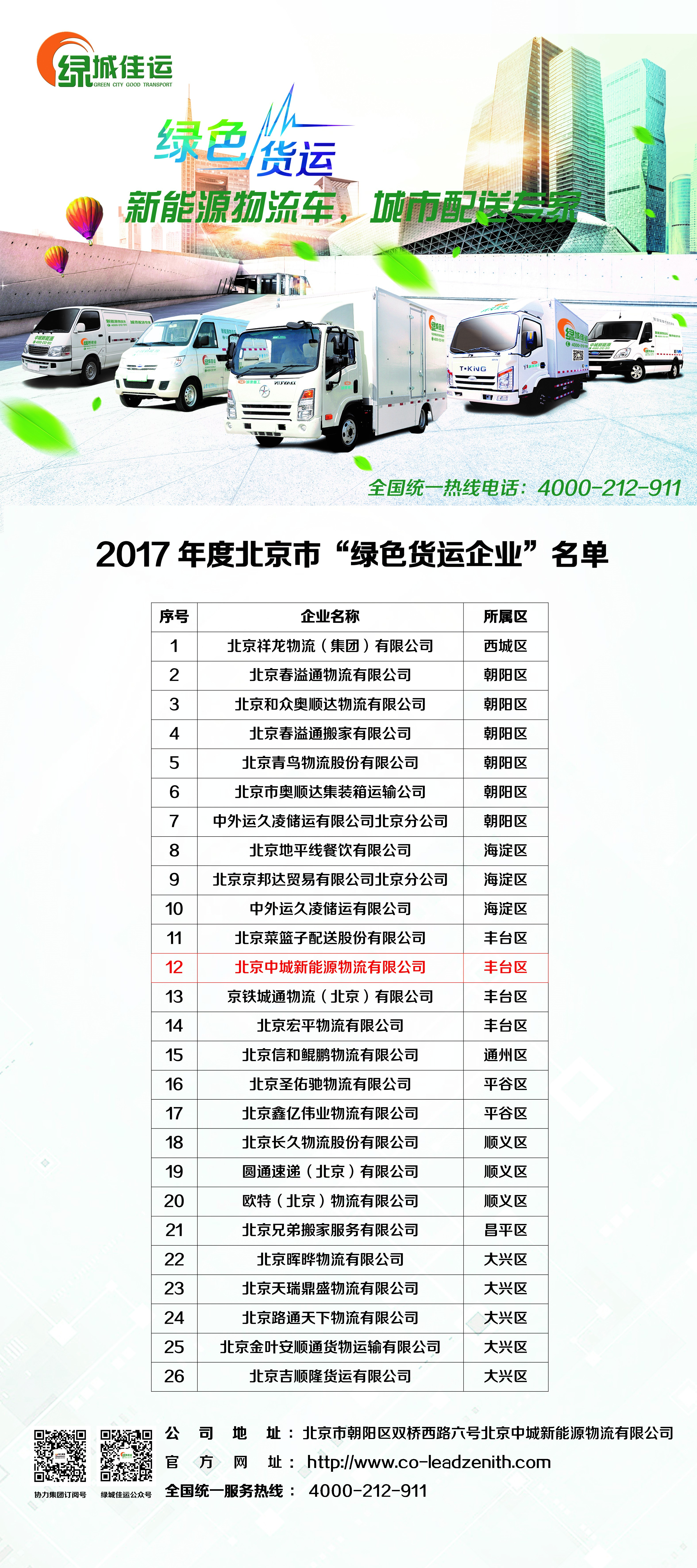 據會議舉辦方協力集團董事長龐忠介紹,協力集團已經形成傳統建筑和新能源汽車兩大核心板塊。新能源汽車板塊包括汽車制造、汽車銷售、新能源車運營、城配物流、車后服務五大業務。中城新能源作為協力集團新能源汽車板塊重要組成部分,成立以來一直致力于通過自身具備的制造、銷售、運維、車后、運力服務和充換電結合模式為客戶提供新能源物流車一站式解決方案。協力集團下屬企業在前幾天剛剛連續第二次獲得了北京市“綠色貨運企業”稱號。“新能源智慧物流 京津冀綠色貨運 聯盟”正式啟后,希望更多企業參與到聯盟中來,為北京的藍天計劃,做出一份貢獻!協力集團將在北京科委新能源汽車發展促進中心的指導下,將繼續探索新能源汽車商業應用模式,專注純電動汽車優質運力,讓智慧物流,綠色貨運遍布京津冀。