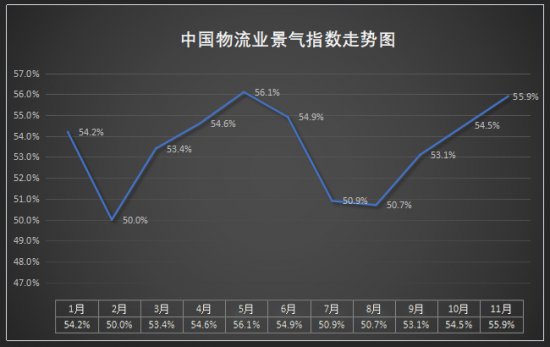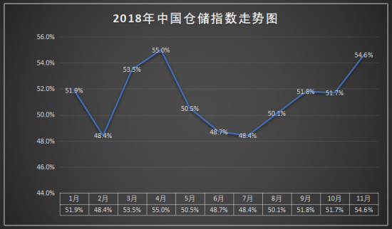 點評:從2018年的中國倉儲指數、物流景氣指數數據表現來看,1至4月份業務活動保持了較為明顯的增長態勢,其中2月份指數落入收縮區間,主要受春節因素影響,但隨著節后生產經營活動的恢復,至4月份,都處于擴張區間的高位水平。但經歷了高峰后連續多月都有明顯的滑坡,主要受高溫多雨的季節性回落影響。8月起隨著營商環境改善,“金九銀十”及中秋國慶、雙十一等節點影響,傳統旺季來臨,連續四個月保持在擴張區間,倉儲物流行業整體運行良好,短期內的需求預期仍較為樂觀。
