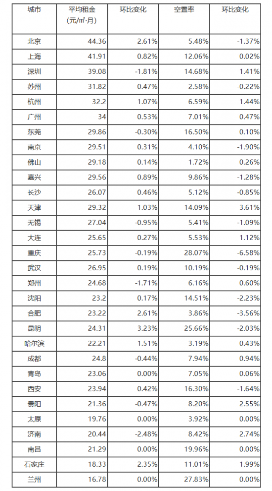 表:全國(guó)30個(gè)城市平均租金和空置率一覽表