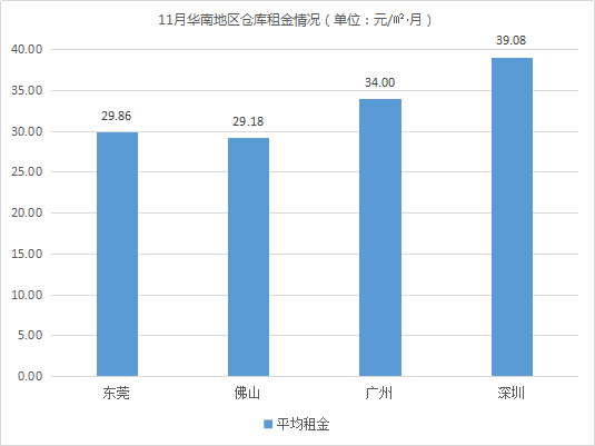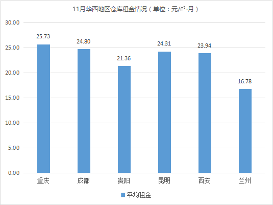 全國(guó)30個(gè)城市倉(cāng)庫(kù)平均租金為26.99元/㎡·月,環(huán)比上漲0.37%,其中,華南、華東地區(qū)倉(cāng)庫(kù)平均租金略高于華北、華中、華西地區(qū)。相較10月,華南、華中地區(qū)倉(cāng)庫(kù)平均租金小幅下降,華東、華北、華西地區(qū)倉(cāng)庫(kù)平均租金小幅上漲。