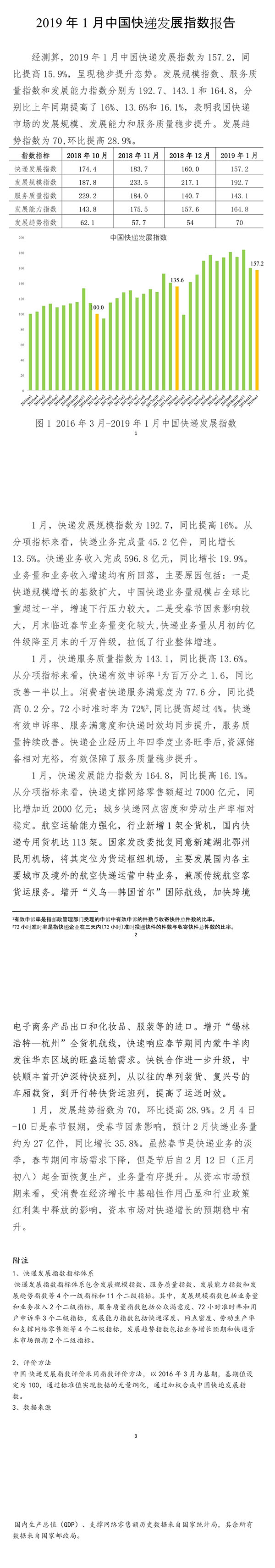 國(guó)家郵政局:2019年1月中國(guó)快遞發(fā)展指數(shù)報(bào)告