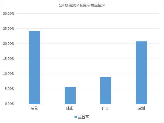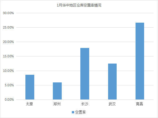 2019年1月中國倉儲設施空置率情況