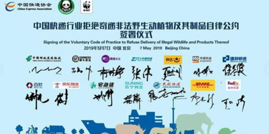 5月7日上午,中國郵政速遞、順豐、申通、圓通、中通、韻達、百世、德邦、宅急送、京東物流、蘇寧物流、民航快遞以及DHL、FedEx,共14家國內外快遞企業共同簽署了快遞業拒絕寄遞非法野生動植物及其制品自律公約(以下簡稱《自律公約》)。各企業承諾采取有效措施,拒絕收寄非法野生動植物及其制品,積極遏制野生動植物非法貿易,保護野生動植物資源和生物多樣性。