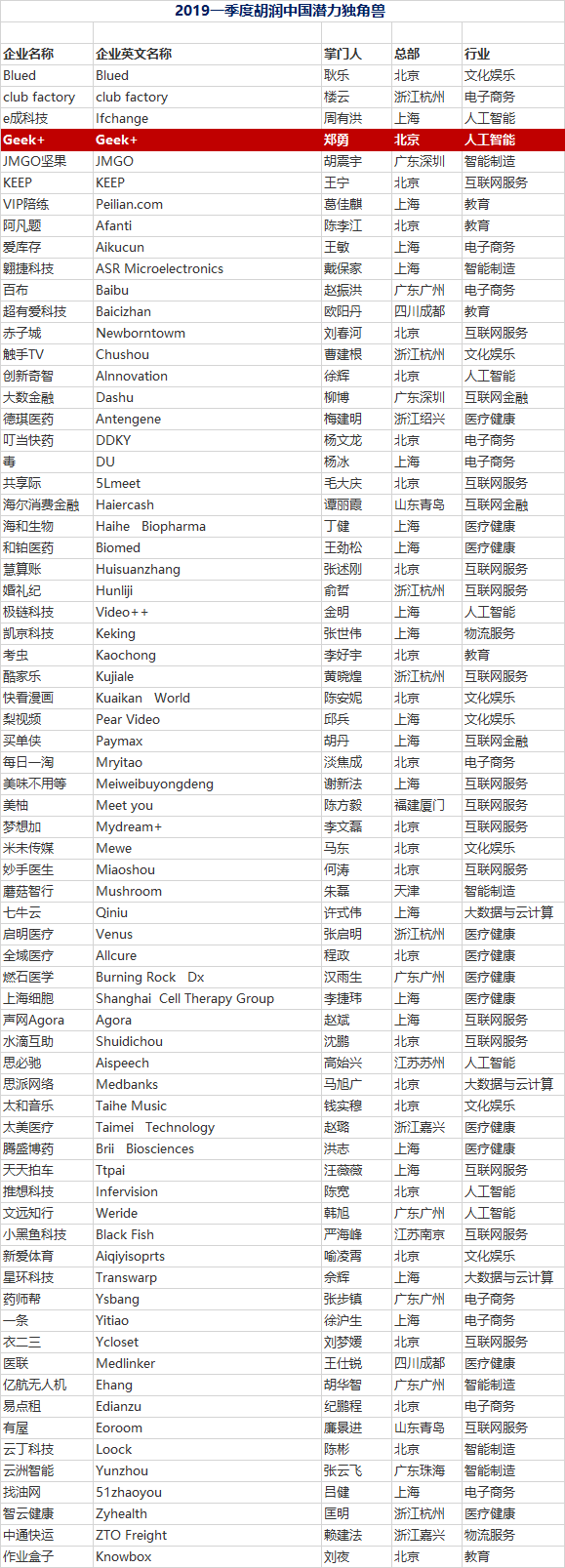 2019年5月7日,胡潤(rùn)研究院發(fā)布了《2019一季度胡潤(rùn)中國(guó)潛力獨(dú)角獸》榜單,評(píng)選出70家高成長(zhǎng)性潛力獨(dú)角獸,是最有可能在三年內(nèi)規(guī)模迅速壯大并大幅度擴(kuò)大影響力的高成長(zhǎng)企業(yè)。胡潤(rùn)表示:“這些年輕的潛力獨(dú)角獸企業(yè)平均成立才5年,充分體現(xiàn)了中國(guó)的創(chuàng)業(yè)和投資者精神,特別值得學(xué)習(xí)。”