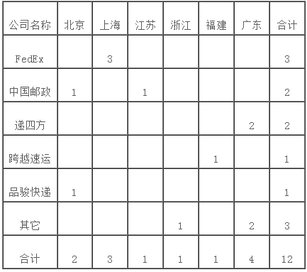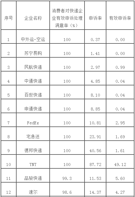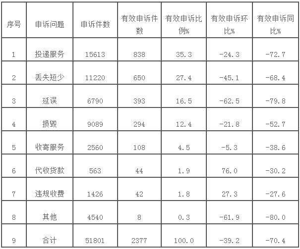 快遞服務問題有效申訴量情況統計表