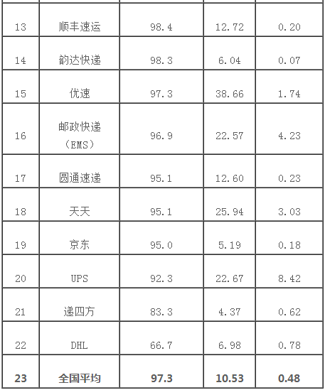 4月,郵政業消費者對全國快遞企業有效申訴處理滿意率平均為97.3%,高于全國平均數的快遞企業有15家,低于全國平均數的有7家;全國快遞服務申訴率平均為10.53,低于全國平均數的快遞企業有10家,高于全國平均數的有12家;全國快遞服務有效申訴率平均為0.48,低于全國平均數的快遞企業有9家,高于全國平均數的有13家。