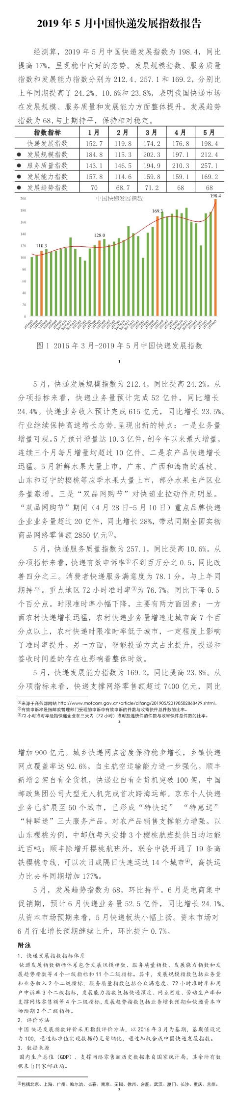 國郵發(fā)布2019年5月中國快遞發(fā)展指數(shù)報告