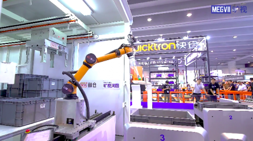 在展會中,曠視機器人網絡協作系統河圖與機器人相結合,全面展示了設備接入和業務開放能力,以多設備交互作業還原了零售倉的搬運、拆零揀選業務場景,在整個作業過程中,曠視河圖與S500、T800、鯨倉科技的連接,體現了河圖對整個作業節奏的控制、連接運維等能力,實現人、設備、訂單、空間、貨的高效協同,吸引了大量觀眾駐足。