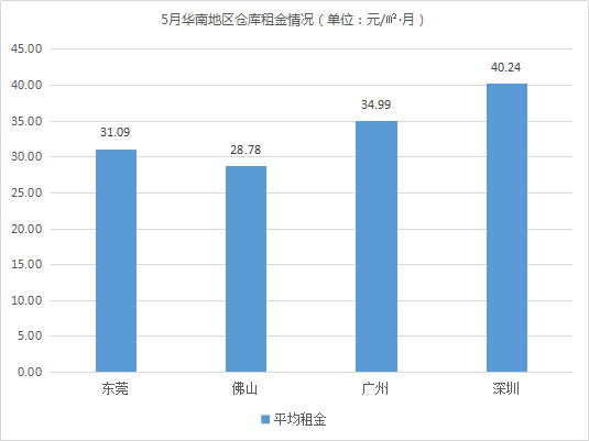 倉庫空置率最低的城市為佛山、蘇州,均低于3%。相較4月,兩個城市倉庫空置率波動不大,倉儲市場基本保持平穩。