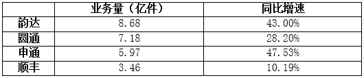 申通業務量同比增速再次領跑