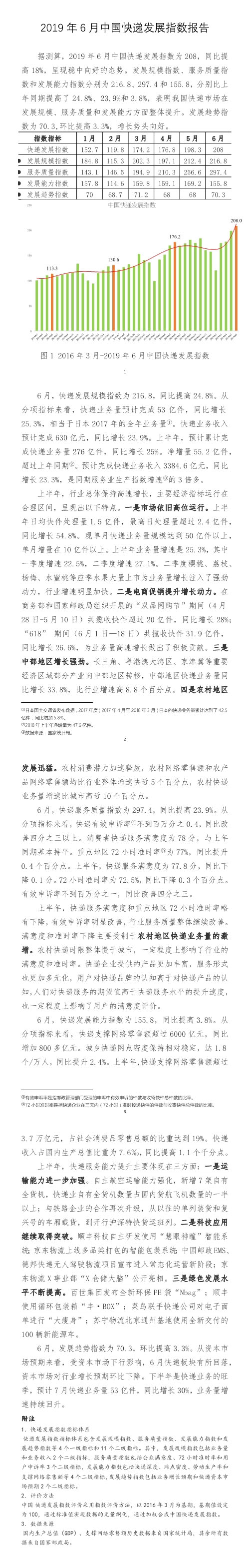 國(guó)家郵政局:2019年6月中國(guó)快遞發(fā)展指數(shù)報(bào)告