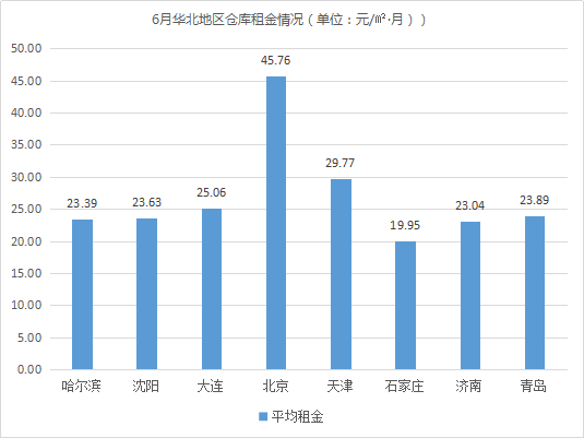 倉庫平均租金最高的城市仍然是北京、上海、深圳,均高于40元/㎡·月。相較5月,上海、深圳倉庫平均租金波動不大;北京因全國最大的綜合立體交通樞紐大興國際機場竣工且即將投運,對附近倉庫租賃市場產生了積極影響,倉庫業主上調倉庫租金,拉動北京倉庫平均租金有所上漲,漲幅為4.24%。
