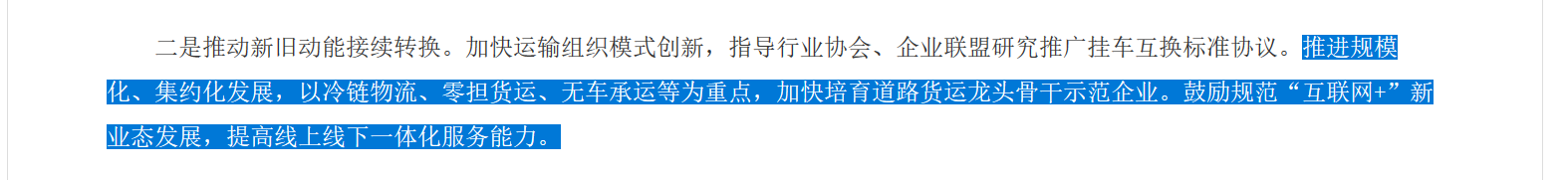 再是5月7日,國務(wù)院辦公廳轉(zhuǎn)發(fā)《關(guān)于加快道路貨運行業(yè)轉(zhuǎn)型升級促進高質(zhì)量發(fā)展的意見》中明確說明會以無車承運為重點,加快培育貨運龍頭骨干示范企業(yè),鼓勵“互聯(lián)網(wǎng)+”的新業(yè)態(tài)發(fā)展。