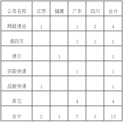 6月各?。▍^(qū)、市)快遞服務申訴情況表