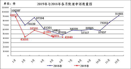 6月,郵政業(yè)消費者對快遞服務問題申訴42840件,環(huán)比下降0.3%,同比下降10.1%。